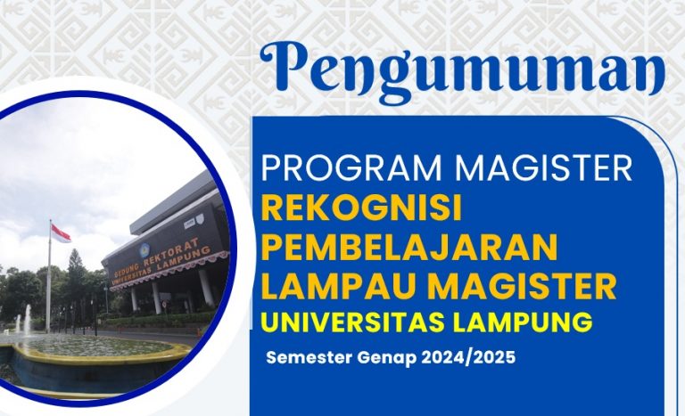 Pengumuman Hasil Seleksi Magister RPL Unila Tahun 2024/2025 dapat diakses pada laman https://pengumuman.unila.ac.id Bagi Peserta Hasil Seleksi Magister RPL Unila Tahun 2024/2025 di Universitas Lampung yang lulus seleksi, baca dengan seksama dokumen konsideran dibawah ini untuk mengetahui tahapan berikutnya. https://drive.google.com/file/d/1fpCIL7627wVGPu8H3RQEaNxO-PNOJDVd/view?usp=sharing