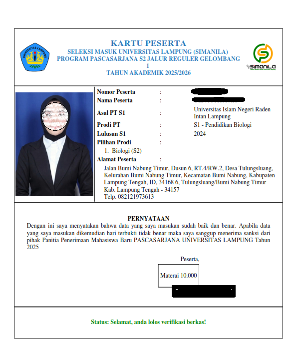 Pengumuman Pelaksanaan Tes CBT Seleksi (Ujian Tulis 1 dan Ujian Tulis 2) dan Wawancara Program Pascasarjana Universitas Lampung Program Doktor, Magister dan Spesialis Gelombang 1 Tahun Akademik 2025/2026